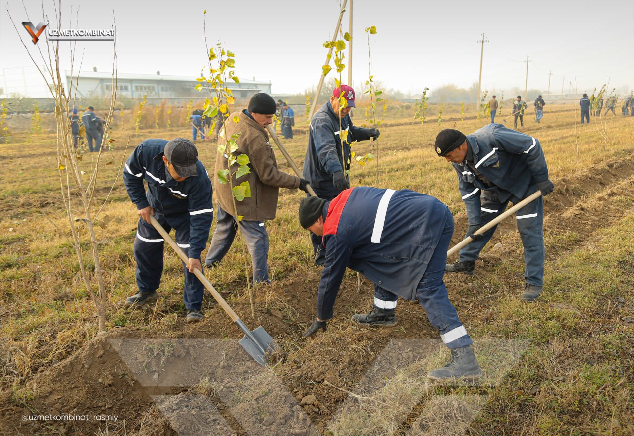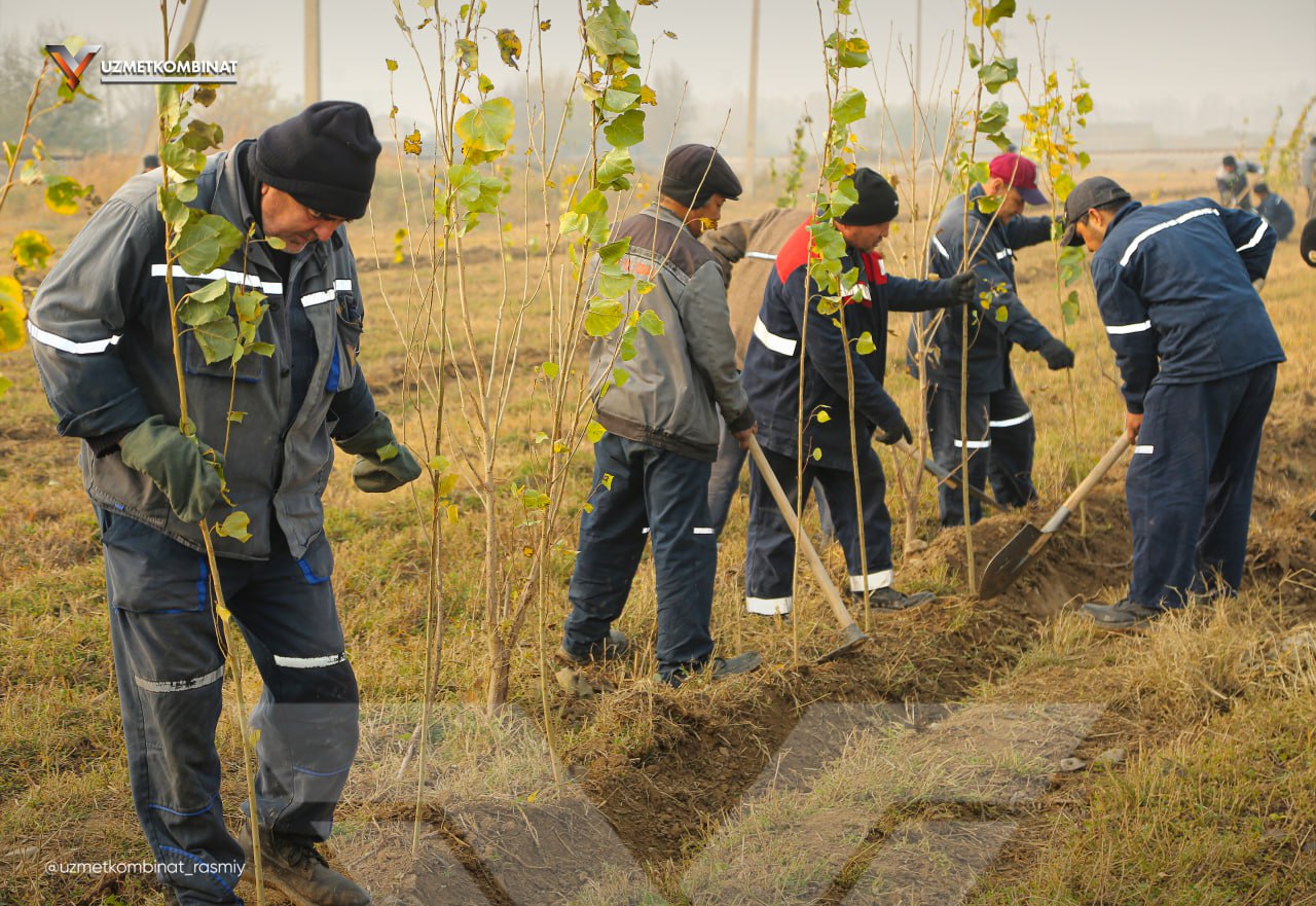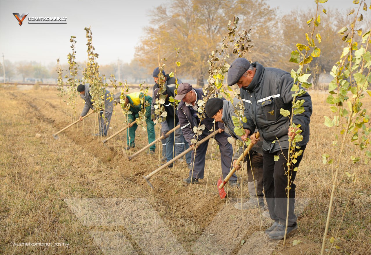 Bugungi kunda atrof-muhitni muhofaza qilish, ekologik barqarorlikni ta’minlash hamda aholi uchun qulay yashash sharoiti yaratish maqsadida kombinat hududida obodonlashtirish va ko‘kalamzorlashtirish ishlari olib borilmoqda. Faqatgina bugunning o‘zida “O‘zmetkombinat” AJ hududlariga 1 500 dona turli xil manzaraviy va mevali daraxt ko‘chatlari ekildi.
