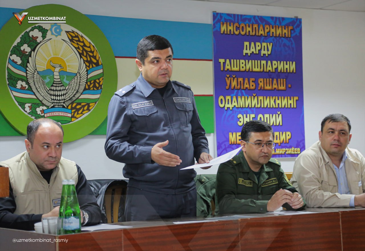 Tadbirda kombinat Boshqaruv raisi — Bosh direktorining o‘rinbosari, maslahatchisi hamda Bekobod shahar IIB boshlig‘i va shahar prokurori so‘zga chiqdi. Ular o‘z chiqishlarida xavfsizlik bo‘yicha zarur choralar, mehnat intizomining ahamiyati, huquqbuzarliklar uchun javobgarlik, profilaktika ishlari va idoralararo hamkorlik bo‘yicha aniq ma’lumotlar taqdim etdilar.