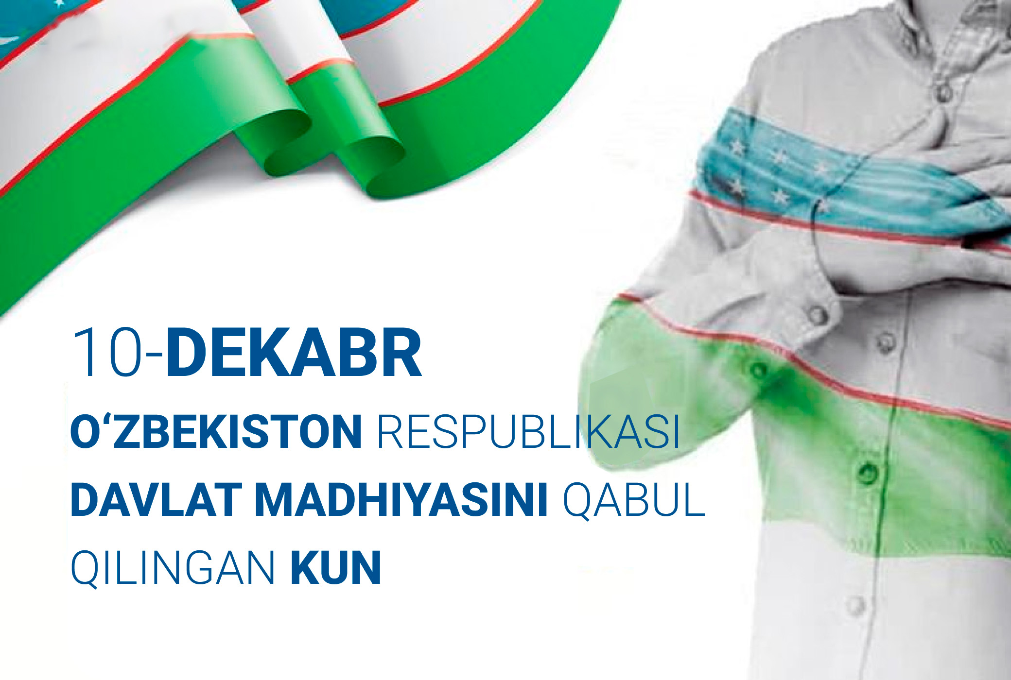 Bugun — Vatanimiz tarixi va davlatchiligida muhim o‘rin tutuvchi qutlug‘ sana. 1992-yil 10-dekabr kuni O‘zbekiston Respublikasining Davlat madhiyasi qabul qilingan bo‘lib, bu kunda millatimiz o‘zining birligi, irodasi va ozodlikka intilishini yana bir bor tantana qiladi.