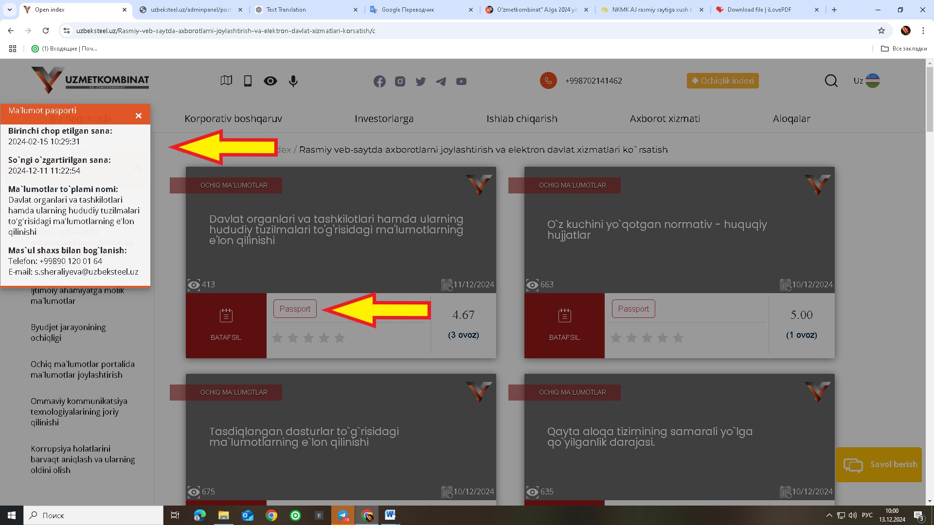 "O'zmetkombinat" AJ rasmiy veb-saytida yaratilgan Ochiq ma'lumotlar to'plamida pasportlash tartibi joriy etilgan