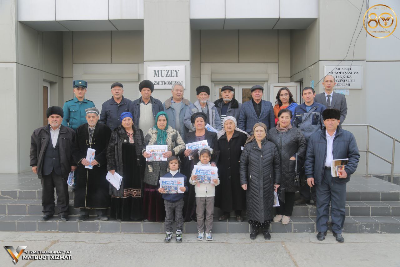Xalq deputatlari Bekobod shahar Kengashi deputati Davlat Xolmuratov tashabbusi bilan shahrimizning "Birdamlik" MFY hududida yashovchi bir guruh nuroniylar, hokim yordamchisi, mahalla raisi, inspektori hamda mahalla faollari "O‘zmetkombinat" AJ tarixi muzeyiga tashrif buyurishdi.