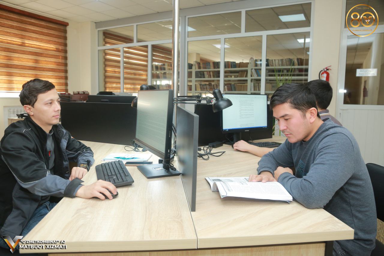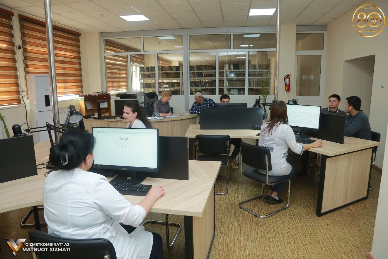 Kombinat rahbariyatining ko‘magi tufayli kutubxona bosqichma-bosqich kitoblarning elektron shaklini takomillashtirib bormoqda. O‘quv zalida oltita simsiz monoblok o‘rnatilgan bo‘lib, ular yordamida jahon elektron axborot resurslaridan foydalanib, zarur ma'lumotlarni olish mumkin.