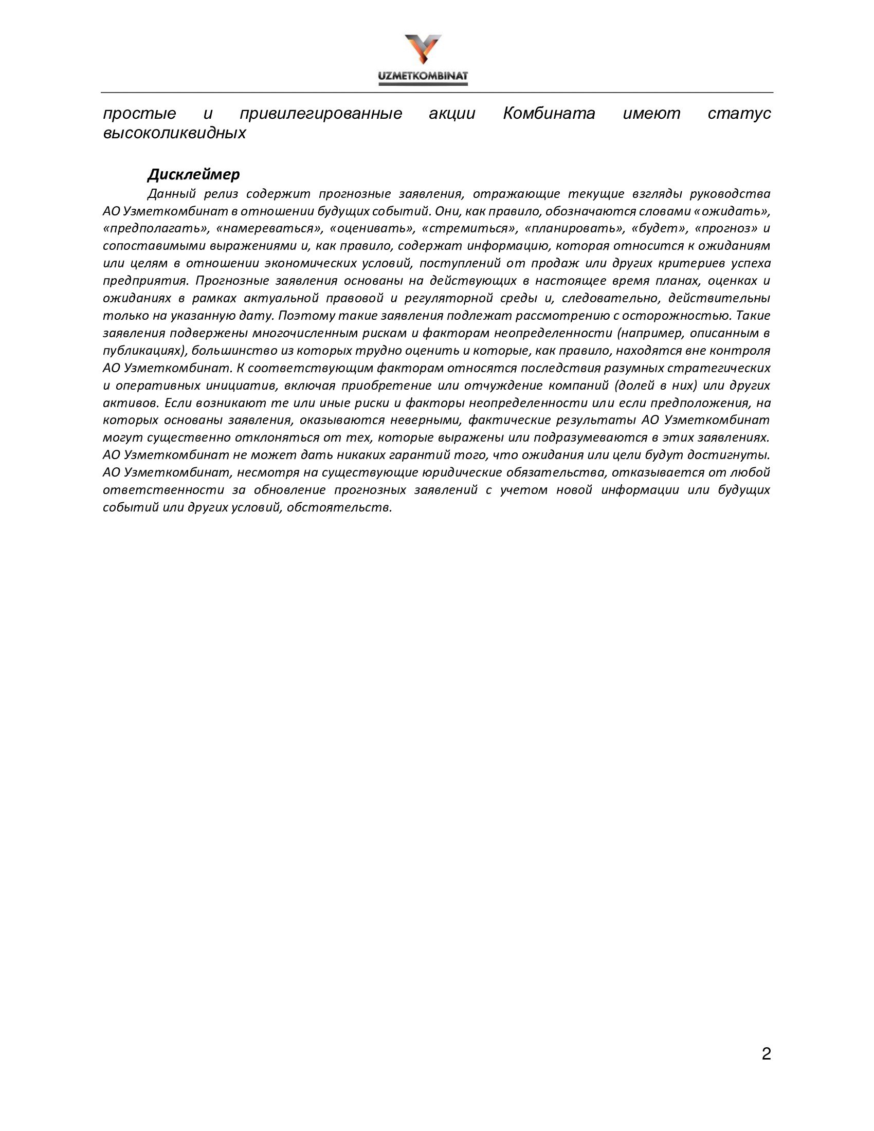 Отметим, что данные изменения подлежат одобрению, в том числе Наблюдательным советом АО "Узметкомбинат". Ожидается, что необходимые одобрения будут получены в ближайшее время.