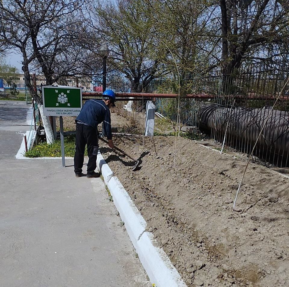 В АО «Узметкомбинат» продолжается весенний сезон посадки деревьев в рамках общенационального проекта «Зелёное пространство».