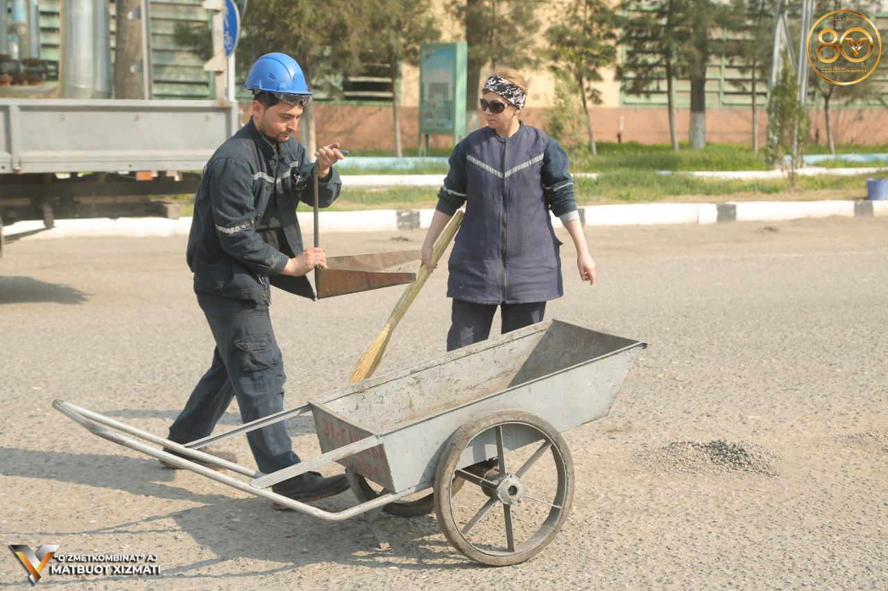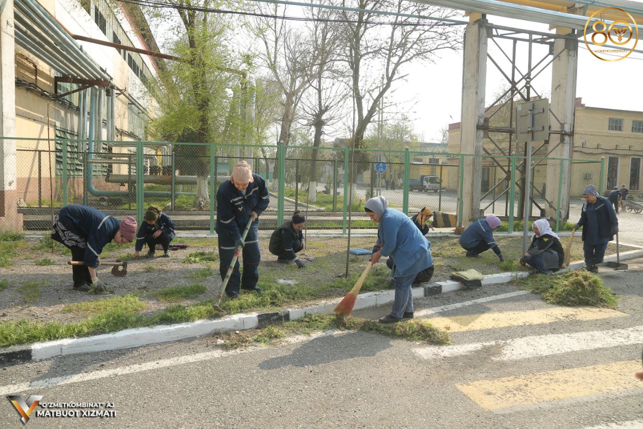 "Yashil makon" umummilliy loyihasi doirasida "O‘zmetkombinat" AJda ham obodonlashtirish ishlari uyushqoqlik bilan tashkil etilmoqda. Obodonlashtirish ishlarida metallurglar o‘zlariga biriktirilgan hududlarni tozalash, tartibga keltirish, chiqindilarni belgilangan joylarga olib borish, ariqlarni tozalash, daraxtlarga shakl berish, shox-shabba va xazonlardan tozalash kabi ishlarni bajarishmoqda.
