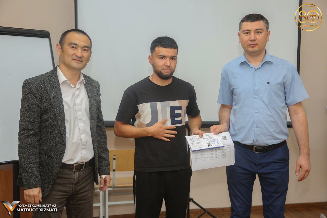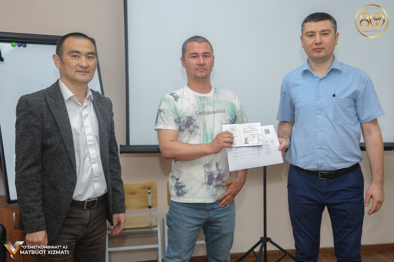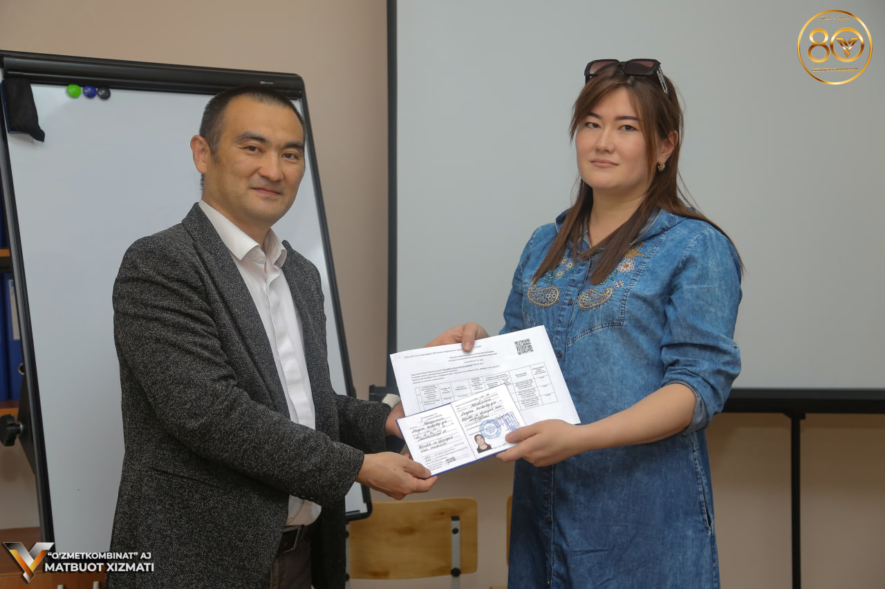 В Управлении по оценке квалификации, обучению и развитию персонала АО «Узметкомбинат» состоялось вручение свидетельств слушателям коммерческого учебного курса по профессии «машинист крана» (мостового и башенного типов). Документы получили работники, успешно завершившие программу подготовки и подтвердившие свою квалификацию.