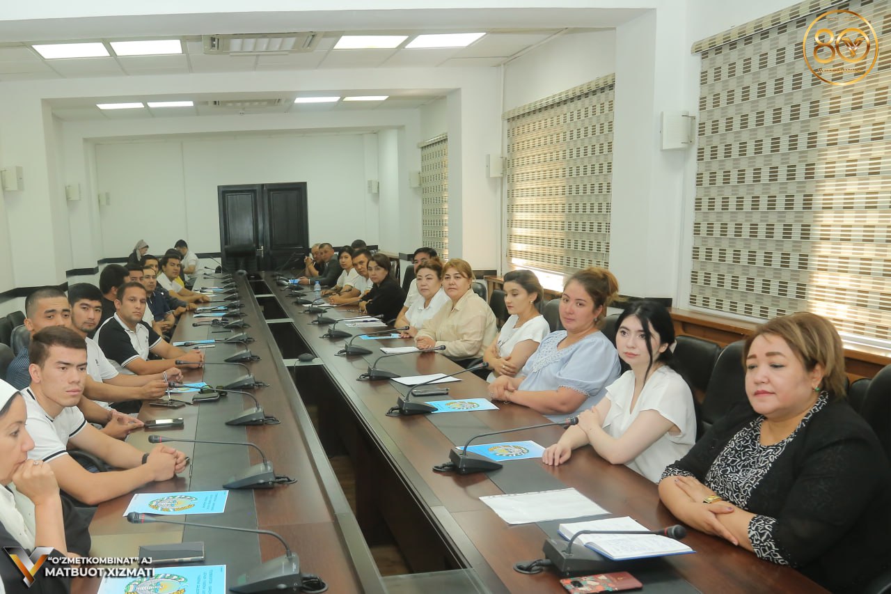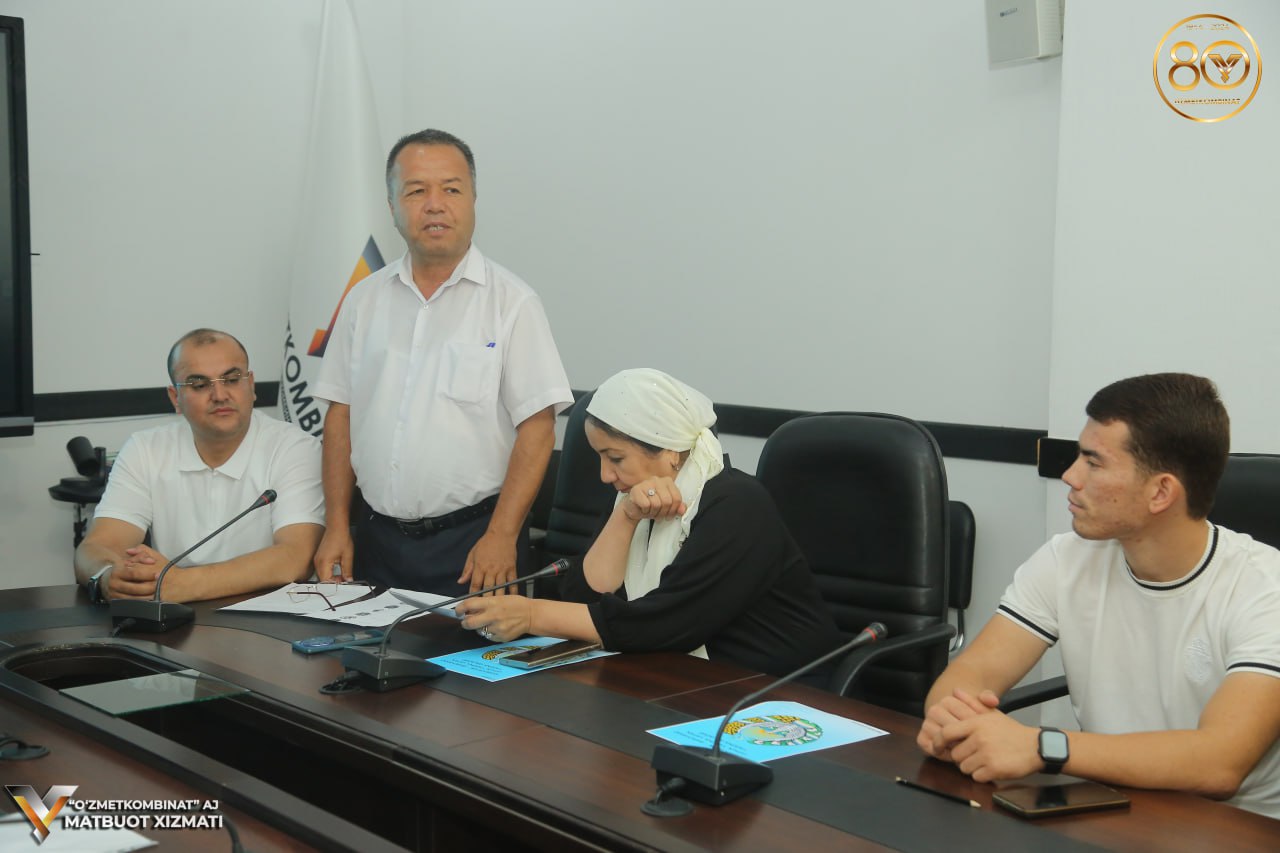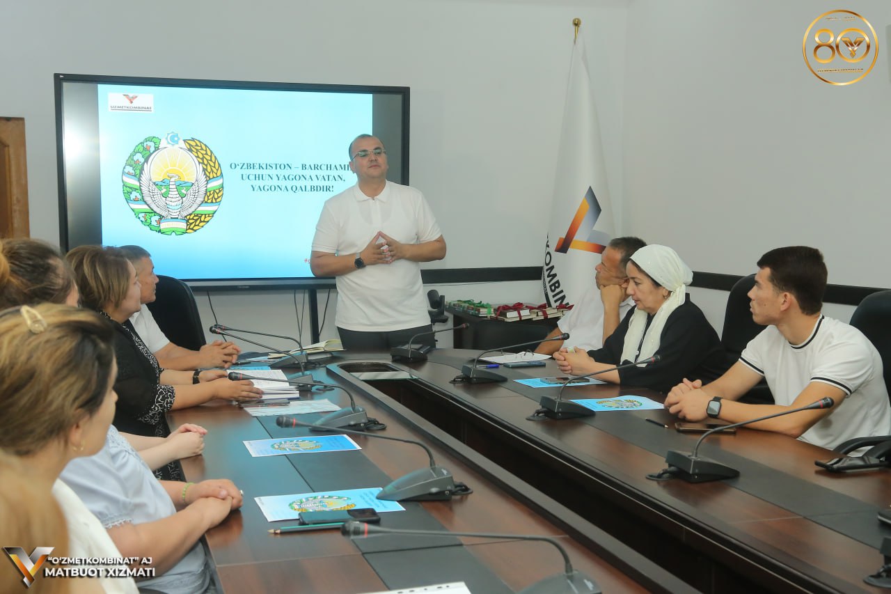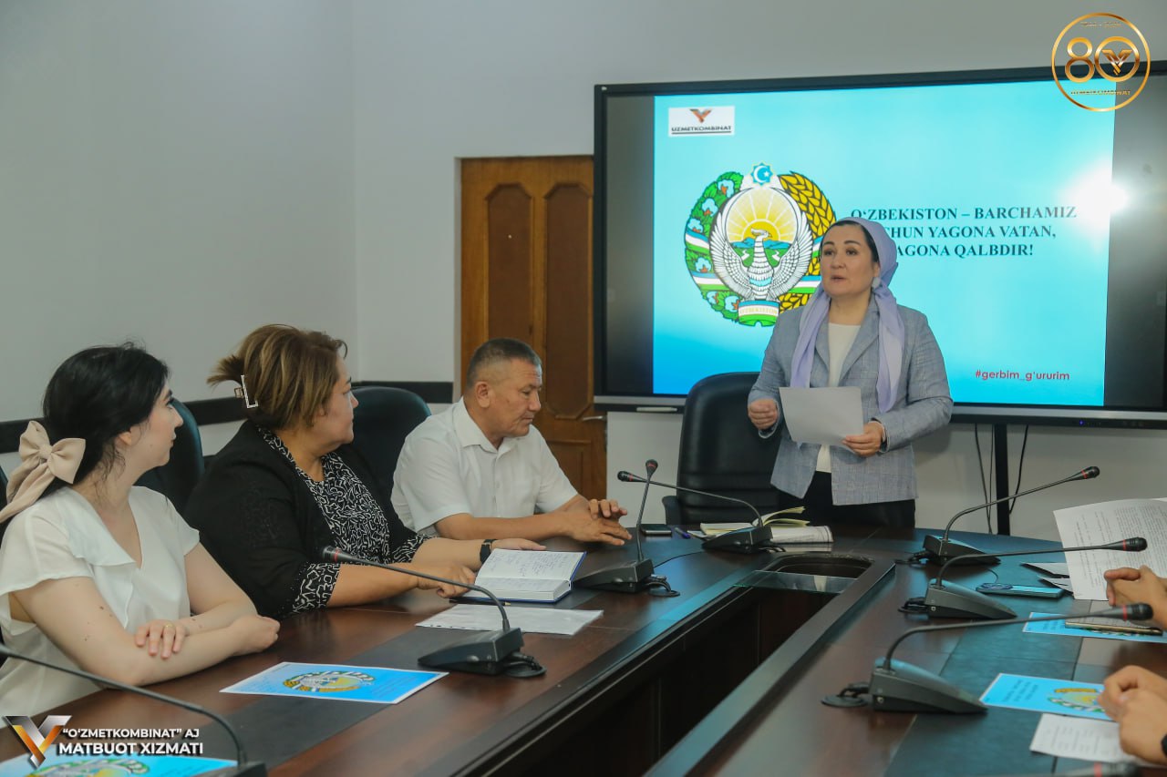 “O‘zmetkombinat” AJ ijroiya apparati majlislar zalida kombinat ma’naviy-ma’rifiy ishlar samaradorligini oshirish, davlat tili to‘g‘risidagi qonun hujjatlariga rioya etilishini ta’minlash masalalari bo‘yicha maslahatchisi kombinat Birlashgan kasaba uyushmasi qo‘mitasi bilan hamkorlikda O‘zbekiston Respublikasi Davlat gerbi qabul qilinganining 32-yilligiga bag‘ishlangan "O‘zbekiston – barchamiz uchun yagona Vatan, yagona qalbdir!" shiori ostida madaniy-ma’rifiy tadbir bo‘lib o‘tdi.