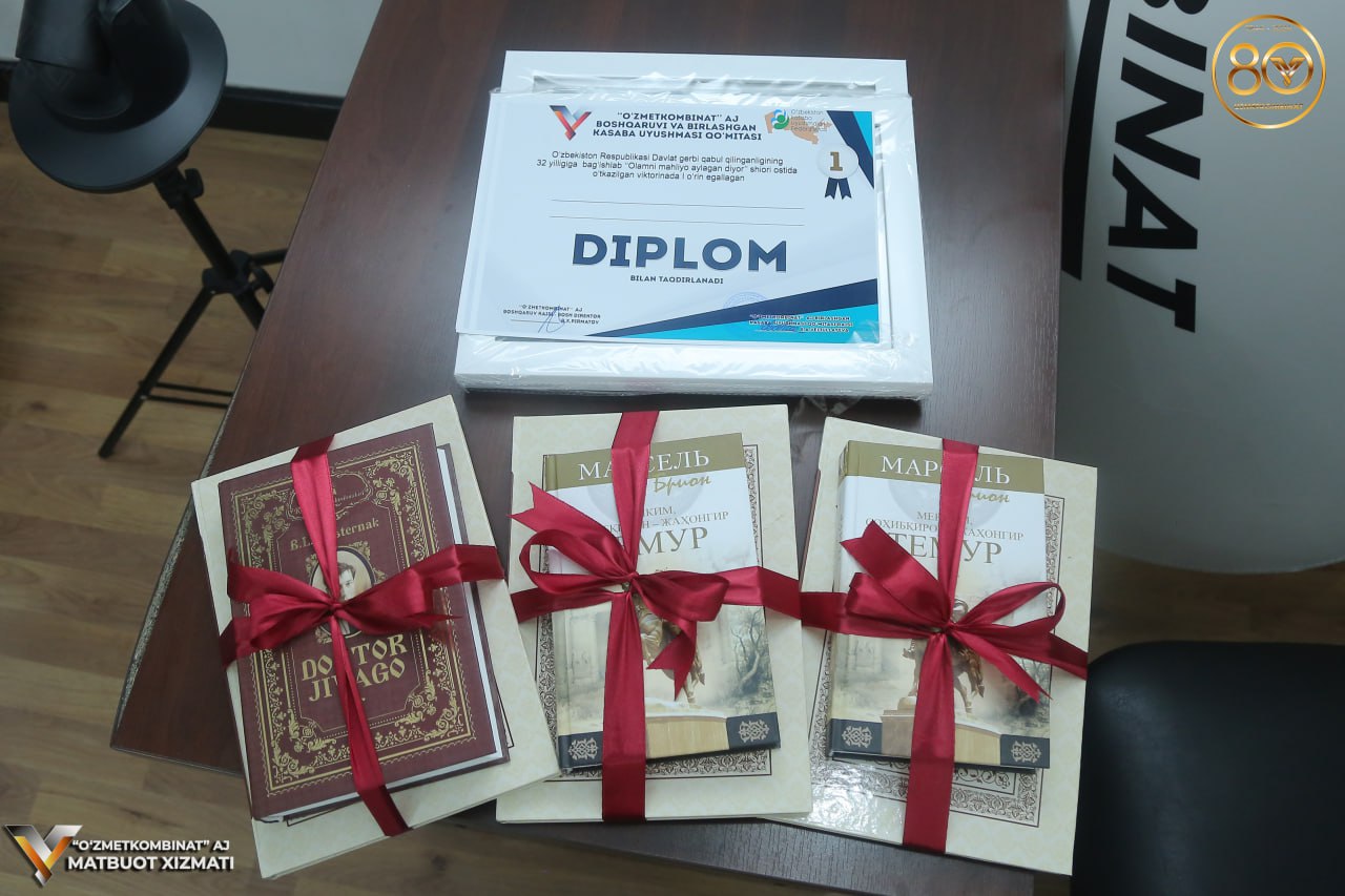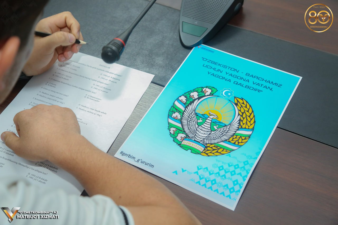 Shuningdek, tadbir davomida O‘zbekiston Davlat timsollari haqida ishtirokchilar qanchalik bilimga ega eganliklarini sinab ko‘rish maqsadida viktorina o‘tkazildi. Viktorinaning yakuni natijalariga ko‘ra 1-o‘rin Adham Imomnazarovga, 2-o‘rin Elmira Akromovaga va 3-o‘rin Nigora Axmedovaga nasib etdi. G‘olib va sovrindorlarga kombinat Birlashgan kasaba uyushma qo‘mitasi tomonidan diplomlar va kitoblar to‘plami taqdim etildi.