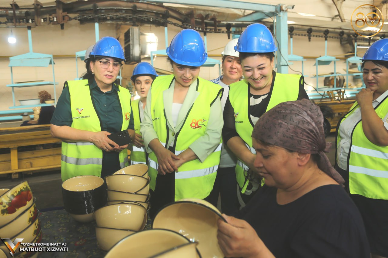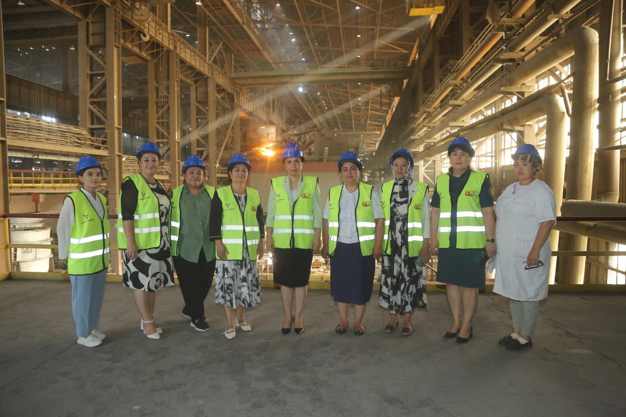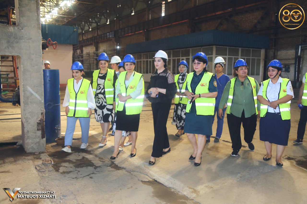 Гости начали визит с музея истории комбината, где ознакомились с экспонатами, производственными процессами и выпускаемой продукцией. Далее делегация побывала в Подразделении производства товаров народного потребления, где состоялся живой диалог с работницами на тему «Независимые женщины нового Узбекистана». Обсуждались вопросы прав, обязанностей, условий труда и реализации гендерного равенства.