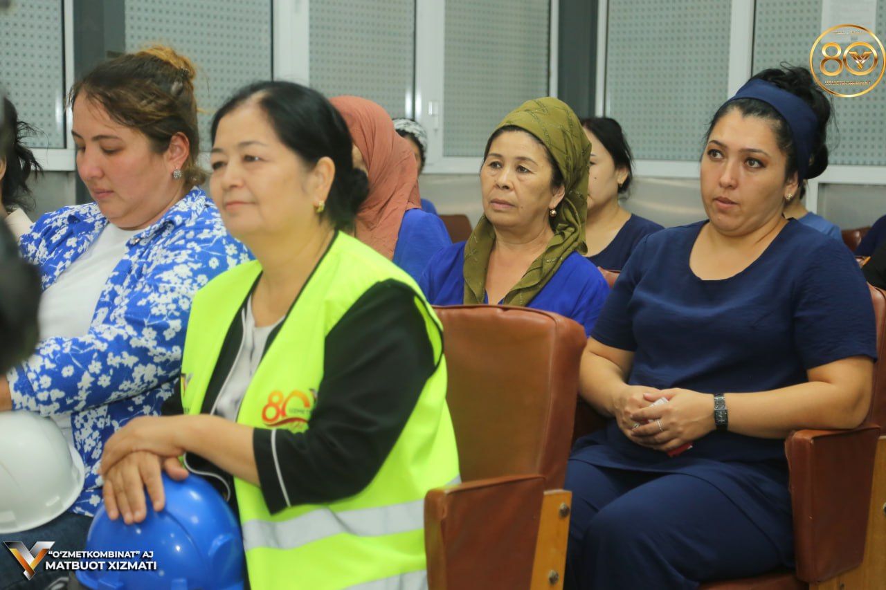 По словам председателя Женсовета АО «Узметкомбинат» Мархабо Халиковой, на предприятии трудится 1971 женщина. Для них создаются комфортные условия работы, оказываются материальная и моральная поддержка, особое внимание уделяется сохранению здоровья.
