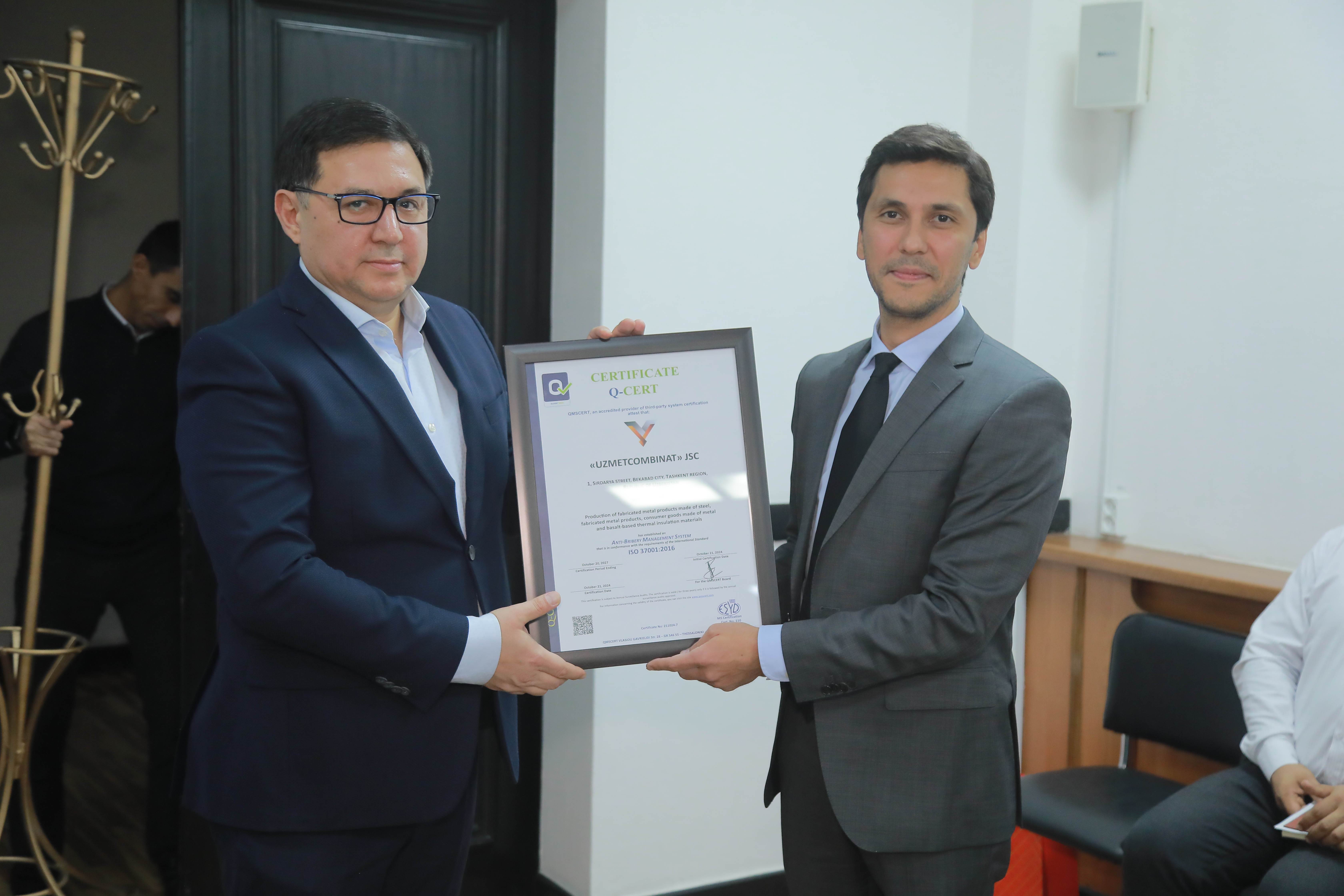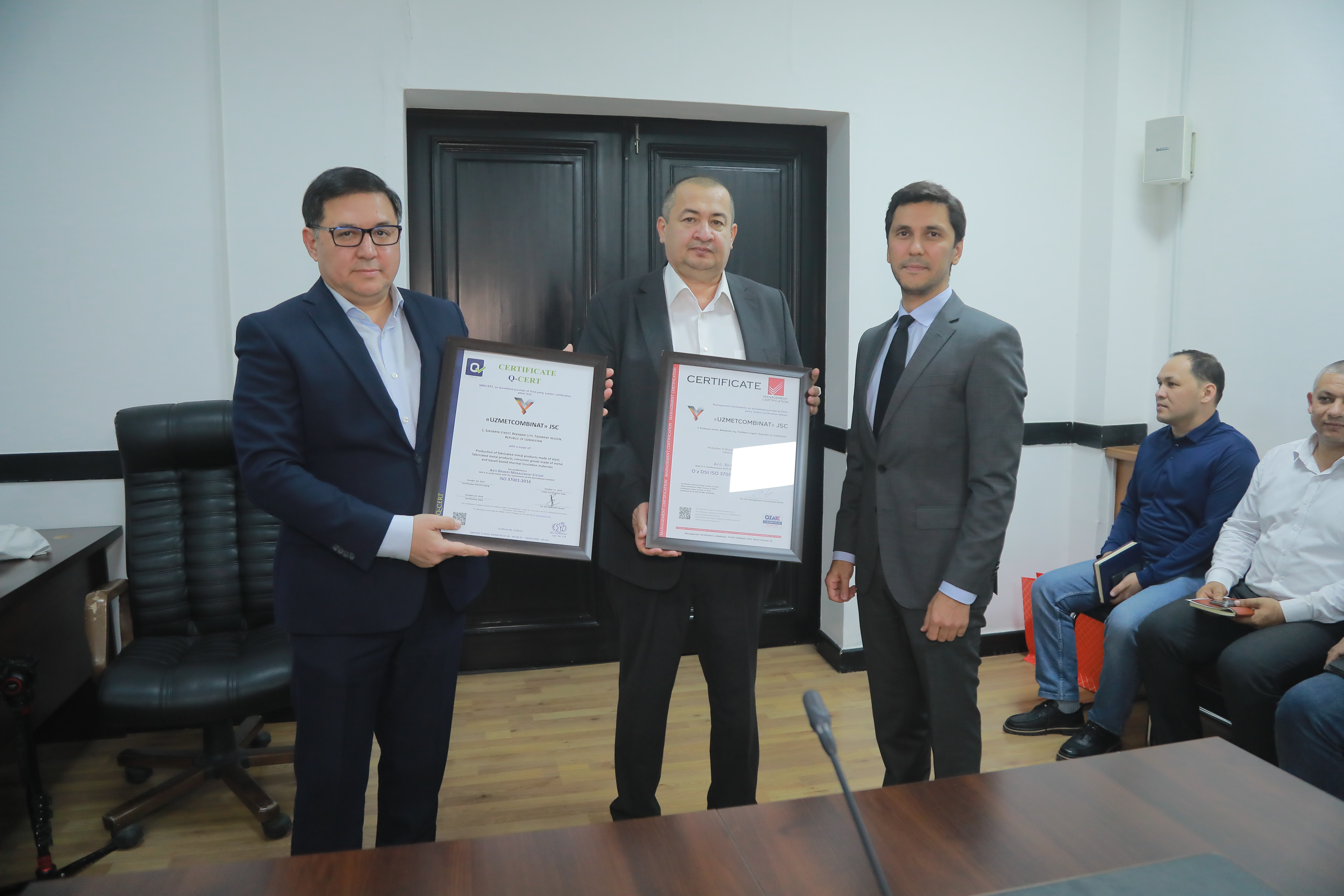 “O‘zbekiston metallurgiya kombinati” aksiyadorlik jamiyati ISO 37001:2016 “Korrupsiyaga qarshi kurashish menejment tizimi” Xalqaro sertifikatini qo‘lga kiritdi.