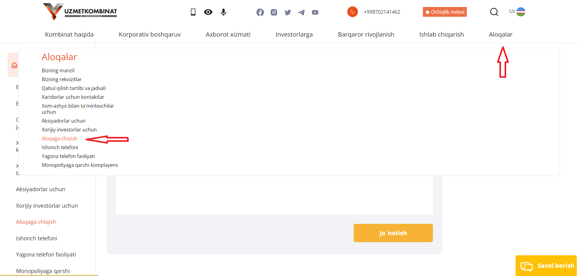Mas`ul shaxs bilan bog`lanish: