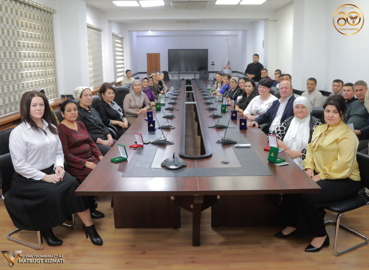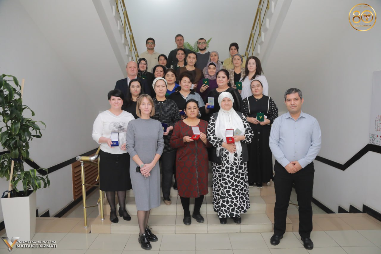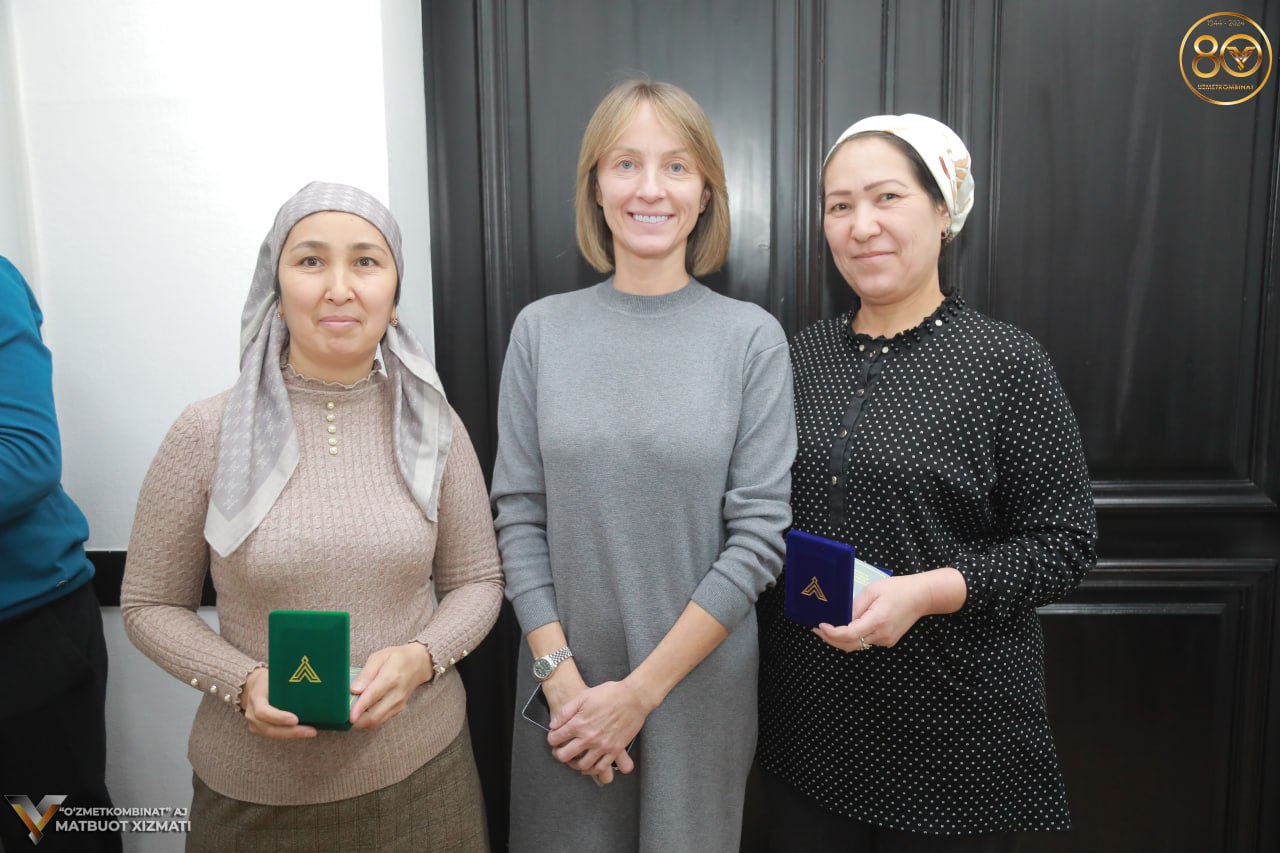 Kombinat Boshqaruv raisining moliya - iqtisodiyot va transformatsiya masalalari bo‘yicha birinchi o‘rinbosari Tatyana Budey uzoq yillar davomida sidqidildan mehnat qilib, korxona iqtisodini yuksalishida o‘z hissalarini qo‘shib kelayotgan bir guruh ishchi-xodimlarni mukofotlar bilan tantanali ravishda taqdirladi.