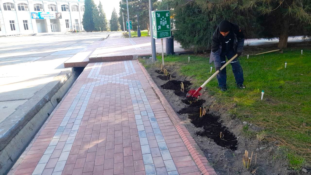 Ayni paytda kuzgi mavsum uchun qizg‘in ishlar amalga oshirilmoqda. Jumladan, hozirda 8,2 gektarga 11 ming dona terak ekildi. Bundan tashqari butasimon ko‘chatlardan 1000 dona chatishgan gibiskus va 1000 dona lagerstremiya ko‘chatlari ekildi.