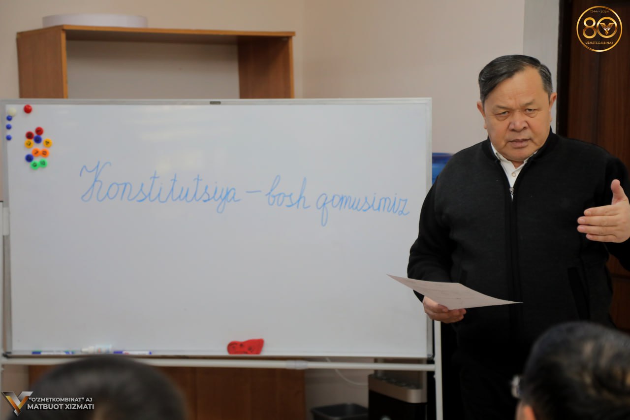 "O‘zmetkombinat" AJ xodimlar malakasini baholash, o‘qitish va rivojlantirish boshqarmasida davlat tili bo'yicha maslahatchi N. Ataxanova va Vazirlar Mahkamasi huzuridagi Oʻzbek tilini rivojlantirish jamgʻarmasi hamda Alisher Navoiy nomidagi ToshDO‘TAU huzuridagi Davlat tilida ish yuritish asoslarini o‘qitish va malaka oshirish markazining hududiy bo'limi bilan hamkorlikda kombinat rahbar kadrlar o‘rtasida davlat tilini keng targʻib qilish hamda imlo savodxonligini oshirish maqsadida "Konstitutsiya - bosh qomusimiz" mavzusida diktant yozildi.