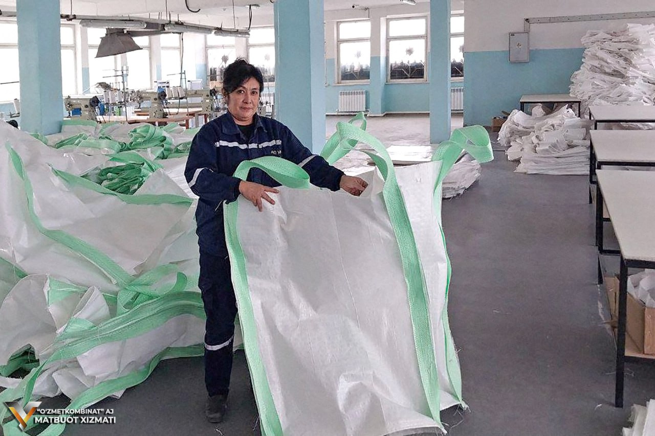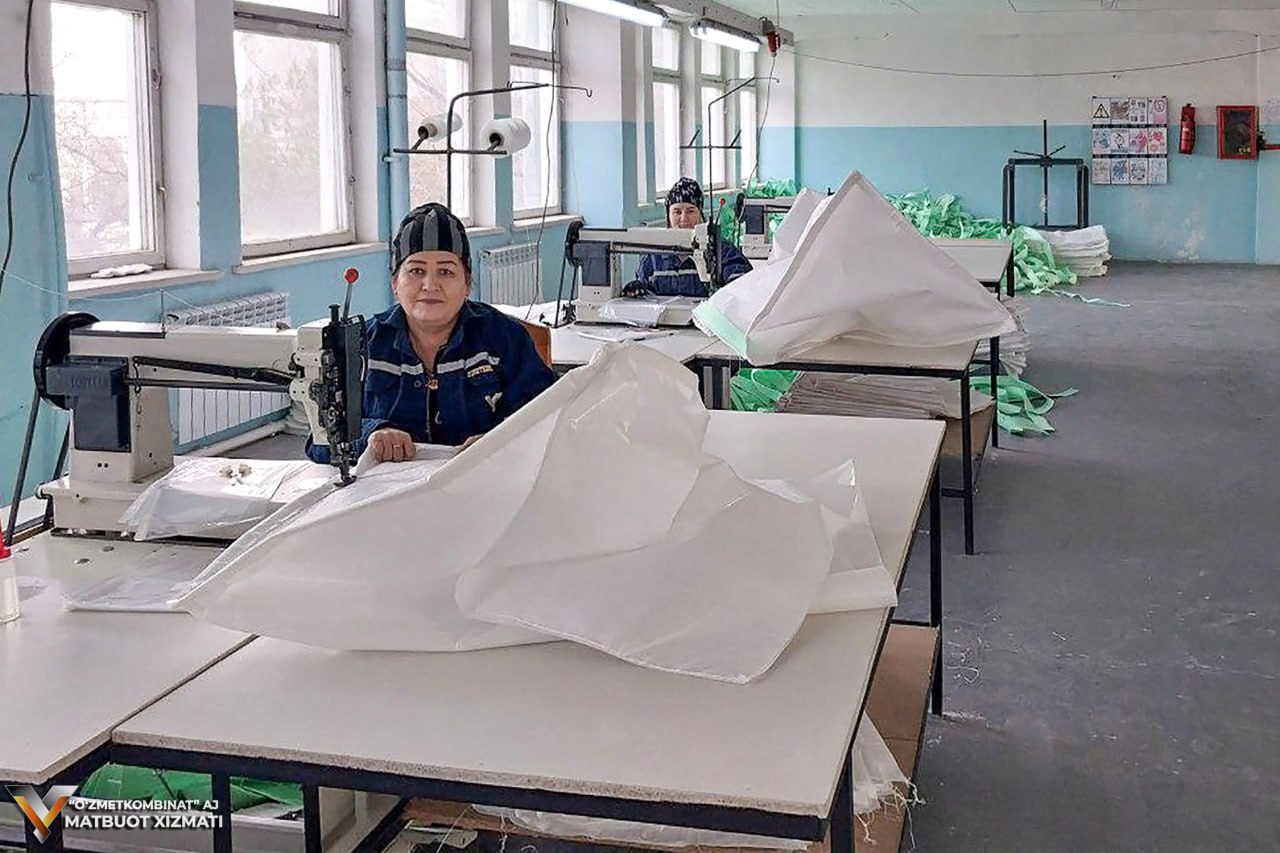 Tikuv uchastkasidagi mahsulotlarga keladigan bo‘lsak, bu yerda 80x80x100 santimetrdagi qoplar tikilmoqda. Qoplarning yuk ko‘taruvchanligi 1000 kg dan iboratdir. Ushbu qoplar kombinatning Rangli metallar ishlab chiqarish va Ferroqotishmalar bo‘linmasi ehtiyoji va talabidan kelib chiqqan holda tikilmoqda.
