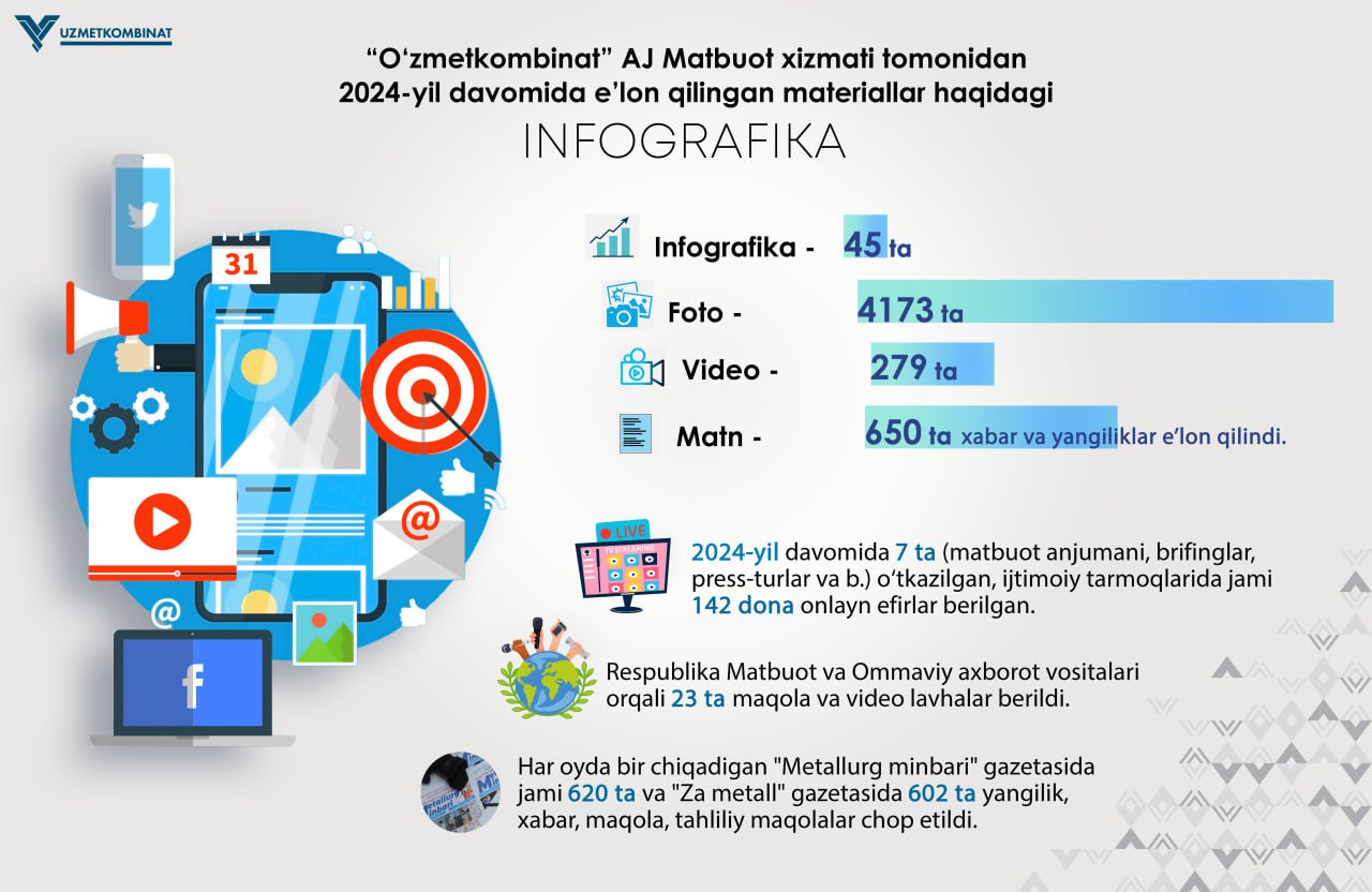 MATBUOT XIZMATI TOMONIDAN 2024-YILDA E'LON QILINGAN MATERIALLAR HAQIDAGI INFOGRAFIKA