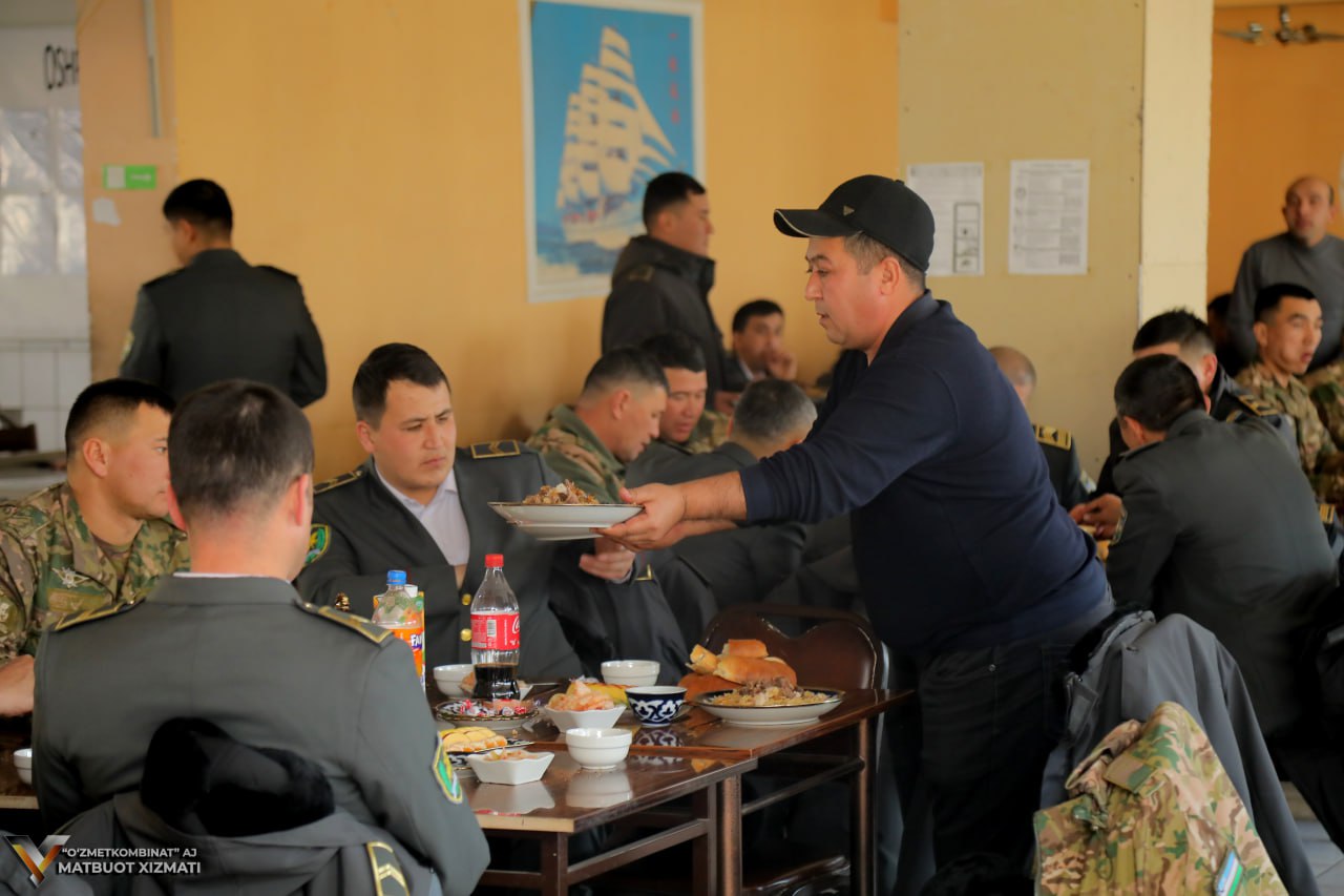 Kombinatimizning Xalq iste’moli mollari ishlab chiqarish bo‘linmasi oshxonasida askaru zobitlar uchun bayram dasturxoni yozilib samimiy tilaklar bildirildi. O‘tkazilgan bayram tadbiri davomida milliy taomlarimizdan biri bo‘lgan palov dasturxonga tortildi. Qolaversa san’atkorlar tomonidan ijro etilgan go‘zal qo‘shiqlar barchaga yuqori kayfiyat baxsh etdi.