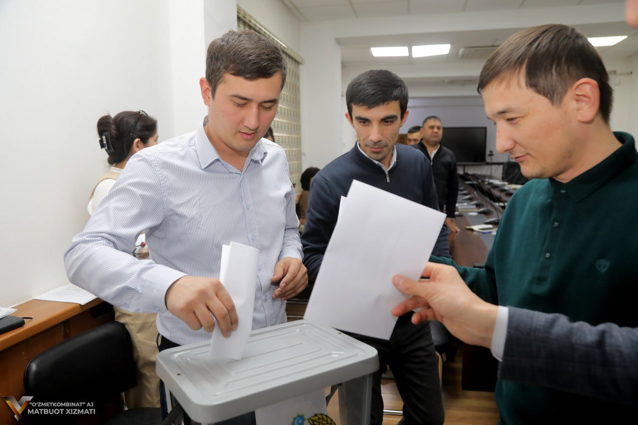 Затем, в соответствии с уставом Федерации профсоюзов Узбекистана, делегаты путем тайного голосования выбрали председателя профсоюзного комитета Исполнительного аппарата. По итогам голосования большинством голосов на эту должность был избран Юсуф Гойибназаров. В ходе собрания также был сформирован состав профсоюзного комитета Исполнительного аппарата и избраны делегаты на отчетно-выборную конференцию профсоюзного комитета АО «Узметкомбинат».