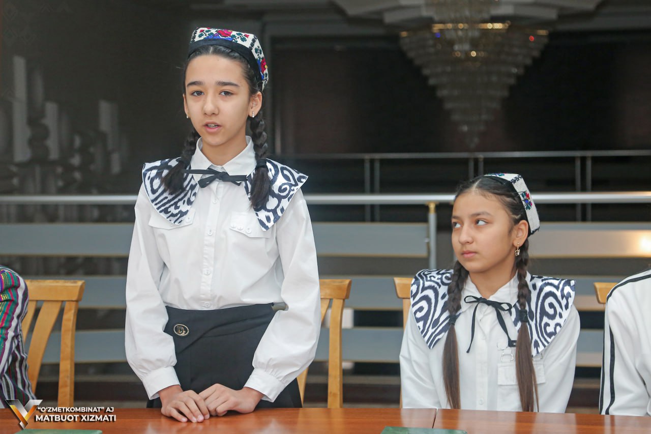 Особенно высокую атмосферу мероприятию придало живое исполнение песни учениками специализированной школы искусств города Бекабад — Жасминой Турмухамедовой и Аббосом Аликуловым.