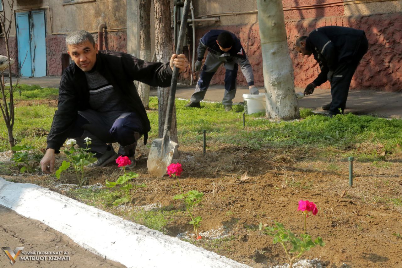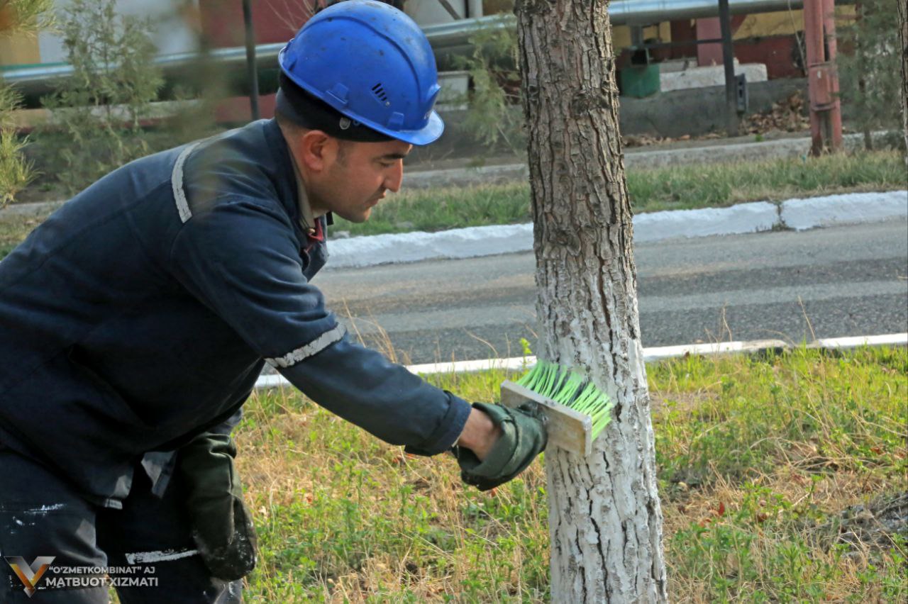 Ertalabdan ishchilar kombinat hududi va unga tutash hududlarni tozalash va ko‘kalamzorlashtirish ishlariga chiqishdi. Hashar davomida daraxtlar butalib shakllarga keltirildi, maydonlar maishiy chiqindilar, qurigan barg va shoxlardan tozalandi. Shuningdek, daraxtlar va bordyurlar oqlanib, hudud obod va bayramona ko‘rinishga ega bo‘ldi.