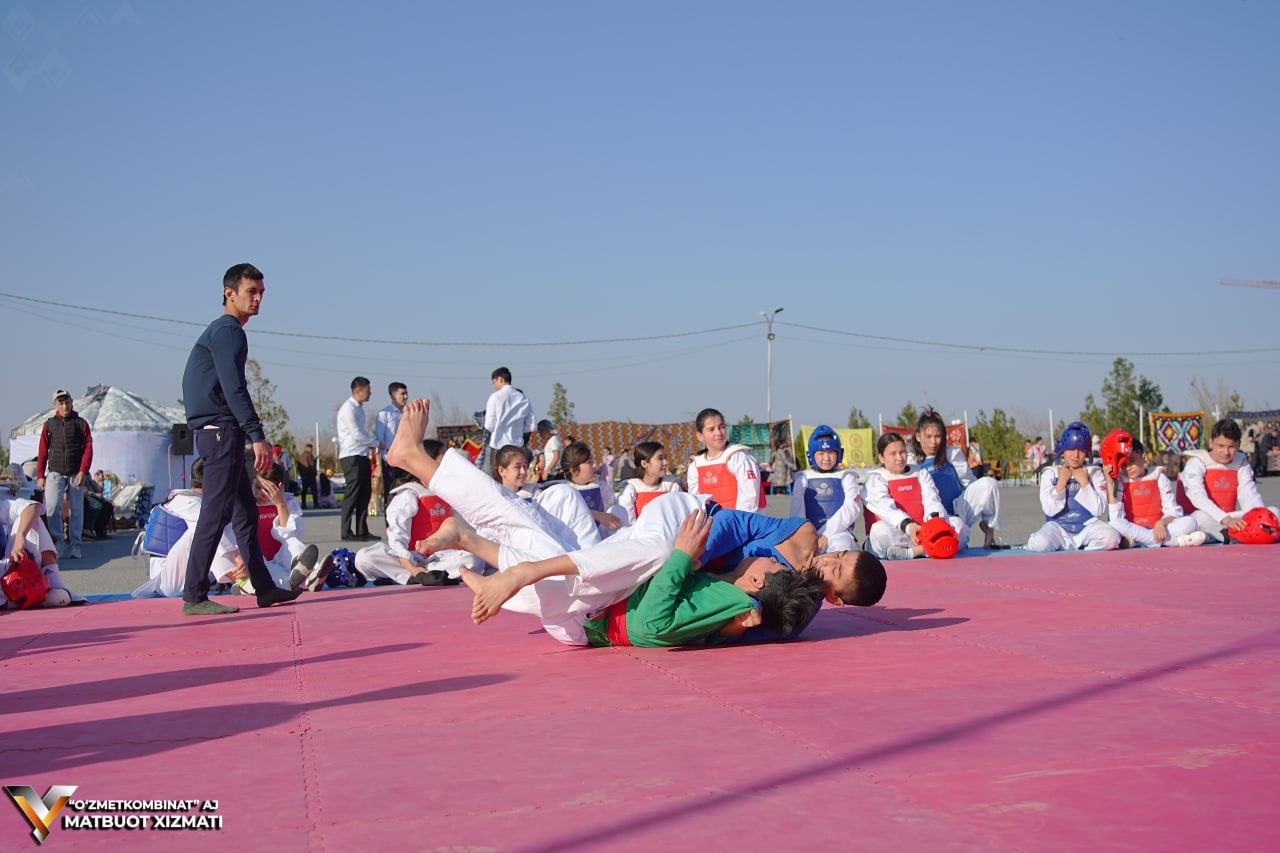 Alohida maydonchalarda yosh sportchilar taekvondo WTF va sambo kurashi bo‘yicha o‘z mahoratlarini namoyish etishmoqda.