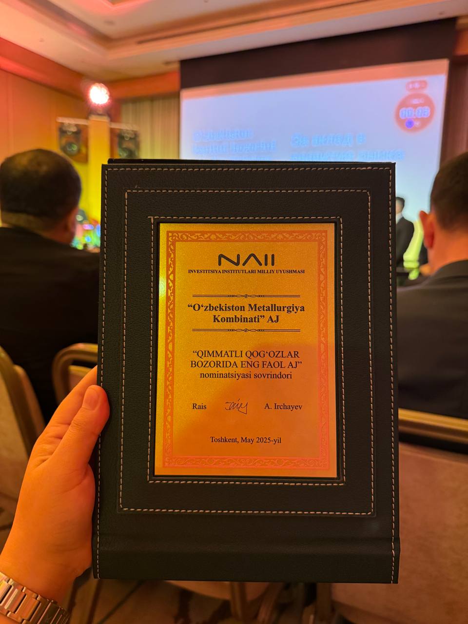 По итогам конкурса АО “Узметкомбинат" стал призером в номинации "Самое активное АО на рынке ценных бумаг".