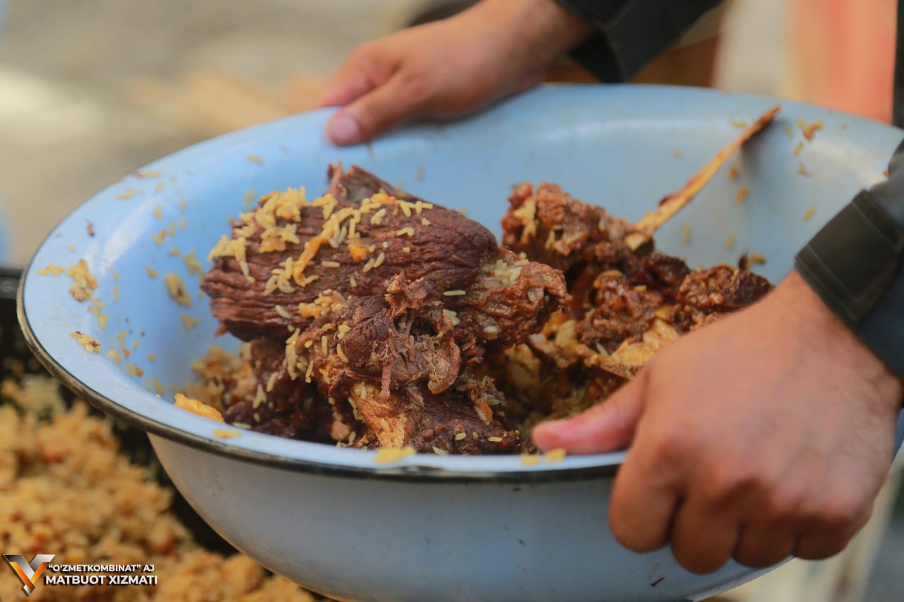 O‘zbekiston Respublikasi Konchilik va metallurgiya sanoati xodimlari kuni munosabati bilan tayyorlangan palovdan fotolavhalar.