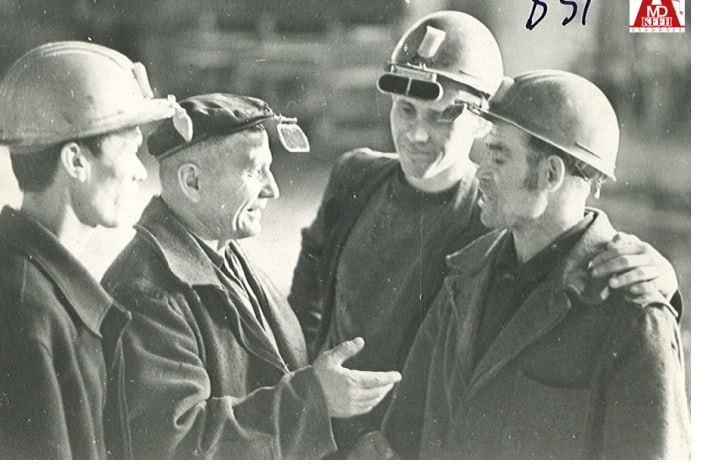 Suratda: po‘lat erituvchi R. Nurjayev, brigada boshlig‘i A. Aliyev po‘lat erituvchilar N. Rilkin A. Drannikov. 1972 yil.