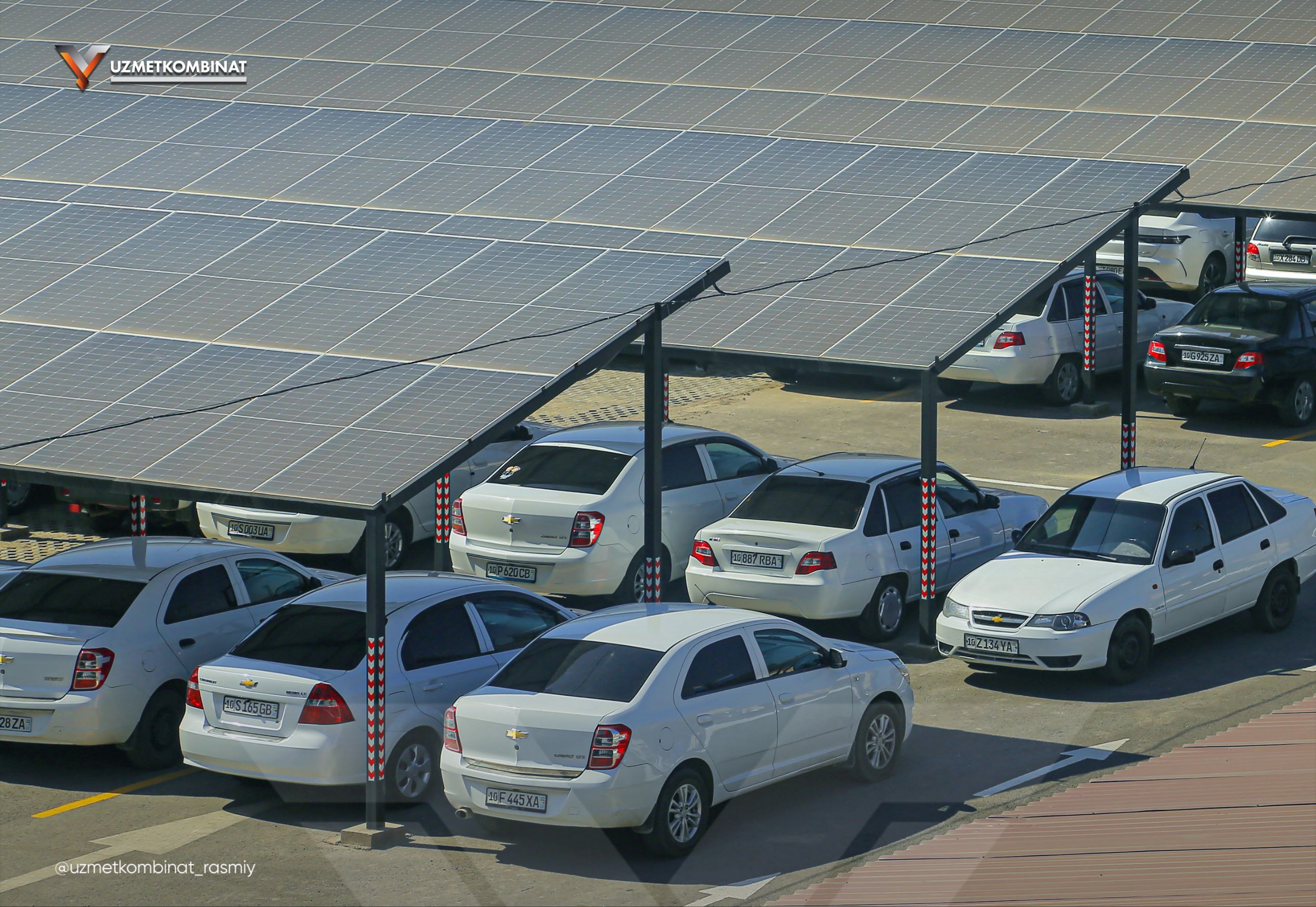 Ulardan 600 kVt quvvatli quyosh elektr stansiyasi Mexanika-ta'mirlash bo‘linmasi avtoturargohida va 900 kVt quvvatlisi Elektrda po'lat eritish bo‘linmasi avtoturargohida o'rnatilgan bo'lib, jami 3 mln. kVt soatdan ortiq elektr energiyasini tejashga imkon berdi.