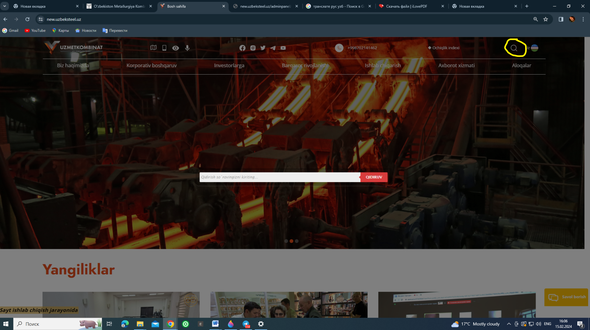 "O'zmetkombinat" AJ veb-saytda ma'lumotlarni qidirishning soddalashtirilgan usullari mavjud