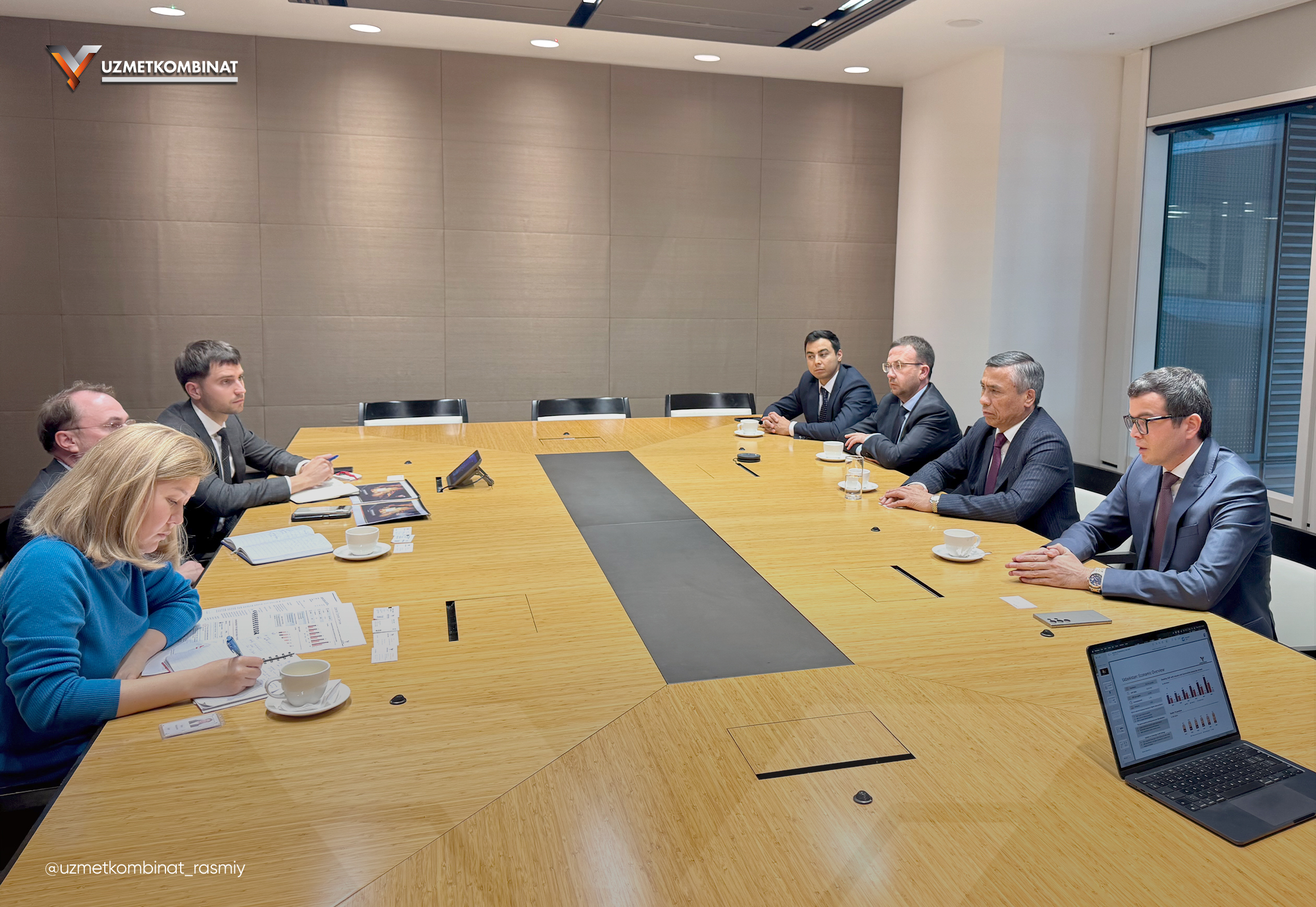 Uchrashuv davomida kompaniya faoliyati, moliyaviy ko‘rsatkichlari va asosiy investitsiya loyihalari taqdim etildi. Muloqot chog‘ida tomonlar sanoat sohasidagi yangi loyihalarni xalqaro moliyaviy institutlar orqali qo‘llab-quvvatlash masalalari, uzoq muddatli hamkorlik istiqbollari, shuningdek yevrobondlar emissiyasiga tayyorgarlik jarayonlarini muhokama qildilar.